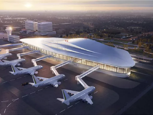 • Terminal aeroportuale con telaio in acciaioTerminal aeroportuale con telaio in acciaio