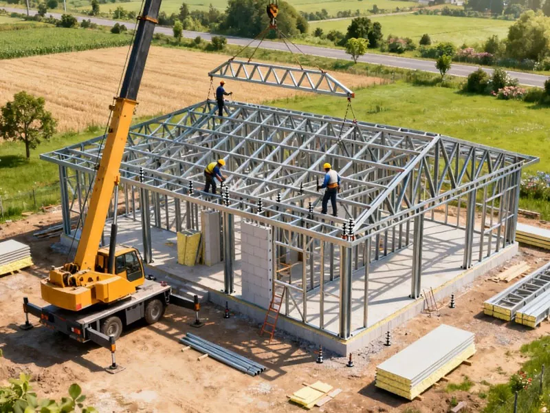 • Costruzione di una casa con struttura in acciaio verdeCostruzione di una casa con struttura in acciaio verde