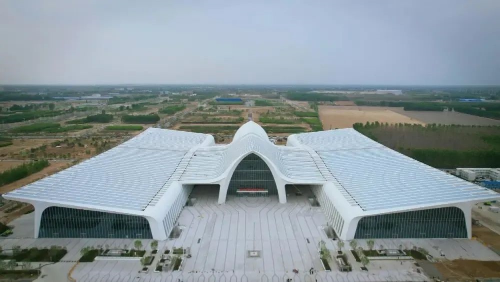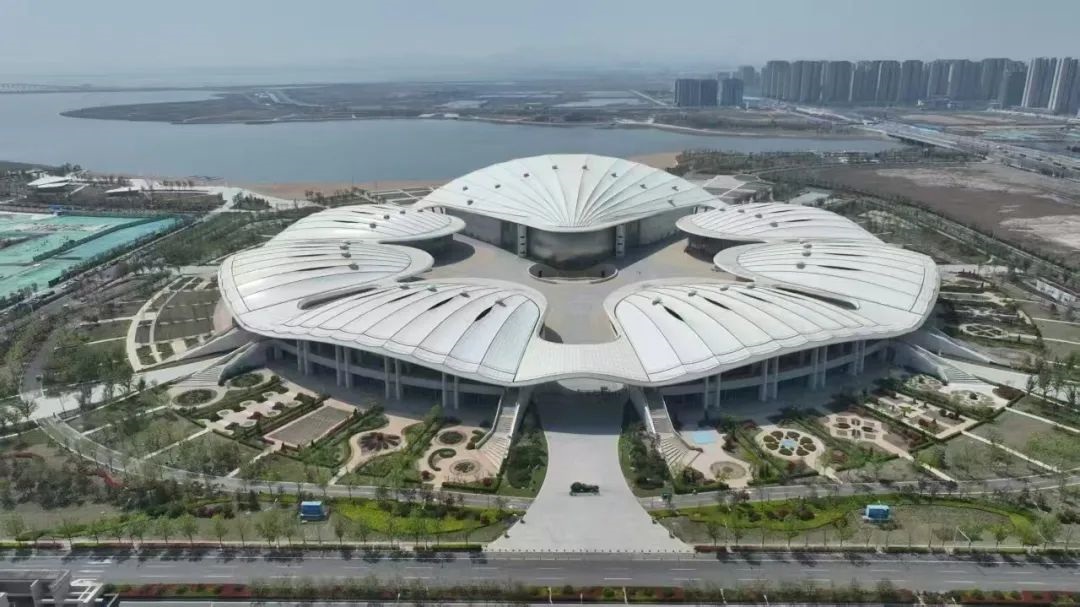 Situato nella zona di dimostrazione SCO di Qingdao, il magnifico centro SCO Pearl Expo lascia un'impressione duratura lungo il lago Ruyi. Visto dall'alto, il suo design circolare ispirato a "unità" presenta sette tetti bianchi interconnessi, simili a conchiglia disposti radialmente. Creano onde ritmiche e ondulate che si alzano elegantemente verso il cielo.
