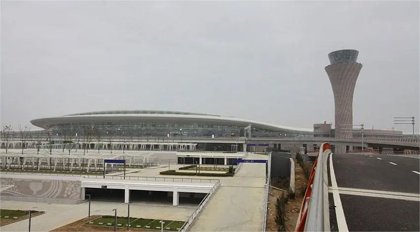 Un grande gateway internazionale di livello 4E a 30 km dal centro. L'espansione di Fase II comprende strutture aeroportuali, controllo del traffico aereo, fornitura di carburante e basi per le compagnie aeree delle compagnie aeree di Shandong e la Cina Eastern Airlines.
