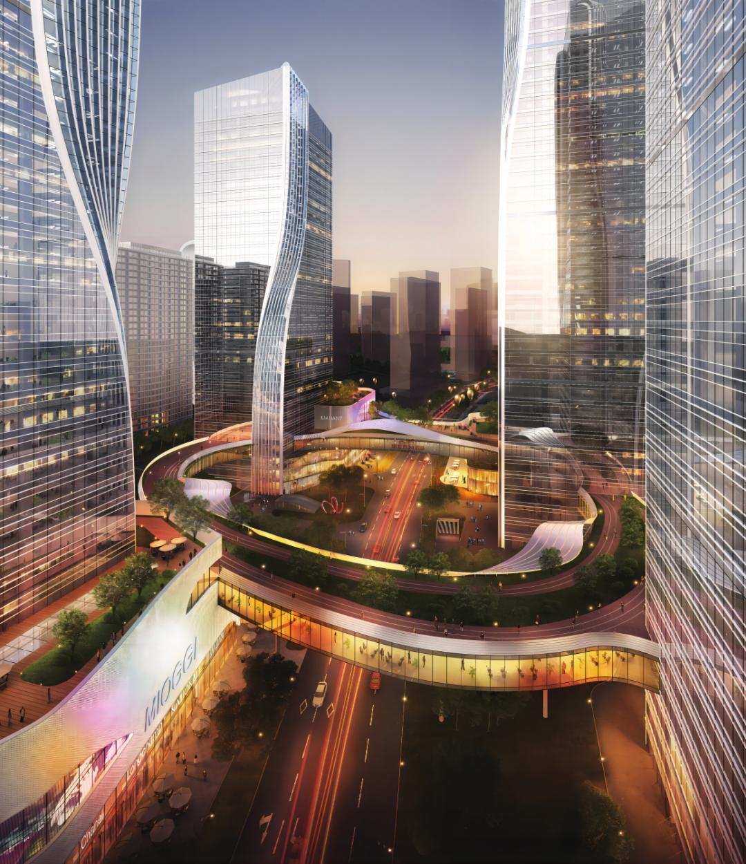 Questo complesso a doppia torre copre 57 acri con una superficie totale di 220.000 mq, integrando uffici, hotel, vendita al dettaglio, ristorazione e intrattenimento. Le sue pareti in tende di vetro, adornate con oltre 7.200 metri di strisce di luce sincronizzate, creano schemi dinamici su quasi 11.000 mq, offrendo un forte impatto visivo.