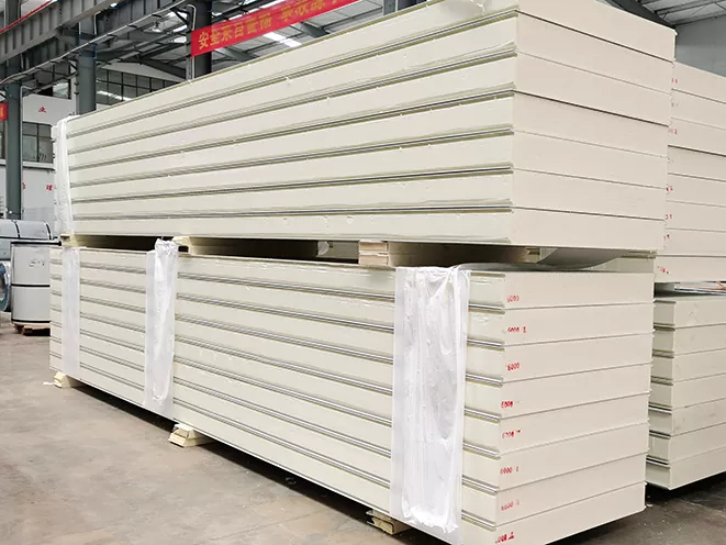 Lo spessore dello strato di schiuma PU determina la capacità isolante del pannello. Gli strati di schiuma più spessi forniscono un migliore isolamento, rendendoli adatti ai climi più freddi o alle aree con sbalzi di temperatura estremi. Le proprietà isolanti dei pannelli sandwich in PU aiutano a mantenere una temperatura interna stabile, riducendo la necessità di sistemi di riscaldamento e raffreddamento.