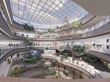 Centro commerciale giapponese del giardino Fukaya: con una struttura in acciaio con un design parziale a due piani, le pareti esterne dell'edificio presentano un aspetto pieghettato come Origami, rendendolo una caratteristica distintiva del centro commerciale. La sua food court si trova al secondo piano, offrendo una doppia vista sul centro commerciale e sulle montagne lontane.